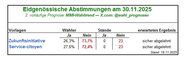 • Eidgenössische Volksabstimmungen am 30.11.2025 - vorläufige Prognose MMI Wahltrend