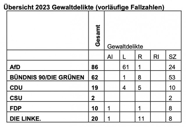 Hier die Zahlen für 2023 was Gewaltdelikte angeht: