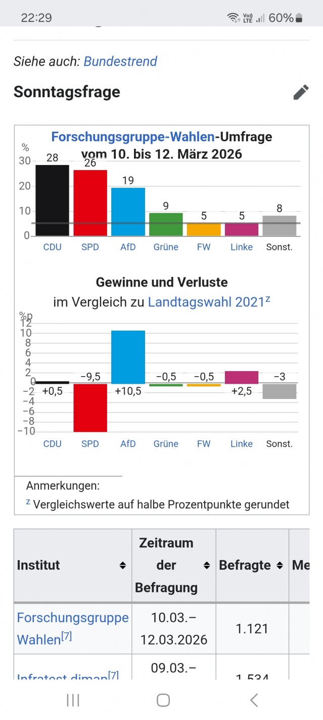 Darüber hinaus sollte man die irrationale Angst innerhalb von Mitte-Links nicht außer Acht lassen, die CDU könnte, wenn sie denn an 1. Stelle liegt, vlt. ja doch mit der AfD ... Linke Paranoia hat zunehmend Einfluss auf das eigene (taktische) Wahlverhalten.