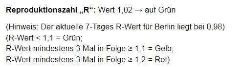 Aufgrund der Großdemo (15.000 Teilnehmer) in Berlin wird es jetzt interessant zu beobachten, ob sich in ca. 2-3 Wochen Effekte zeigen und die Farbe der Ampel verändern lassen. Stand 8.6.