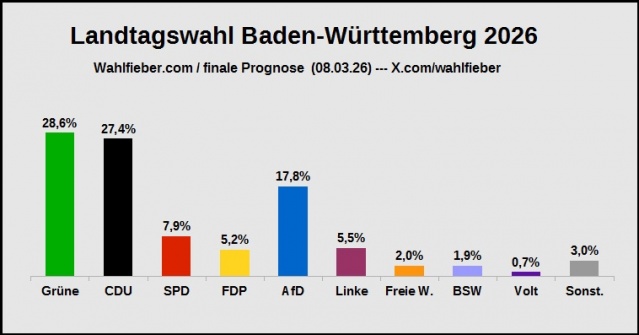 • "offizielle" Prognose von Wahlfieber - Landtagswahl in Baden-Württemberg 2026