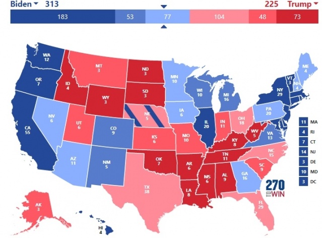 Somit tippe ich jetzt doch auf einen knappen Sieg von Biden mit 278 zu 260